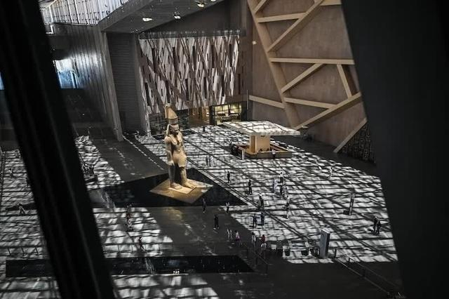 在吉萨金字塔近旁,大埃及博物馆散发出威严与秩序感,使其从喧嚣混乱的首都脱颖而出。这一博物馆于2002年选址,2005年开工建设,于今年正式对外开放,总投资达11亿美元。在开馆仪式上,埃及总统塞西表示,“这座宏伟的建筑不仅是保存珍贵文物的场所,更是埃及人民智慧的鲜活见证。”博物馆馆长艾哈迈德·古奈姆表示:“它的建筑宏伟,仿佛代表了埃及的第四座金字塔。”
