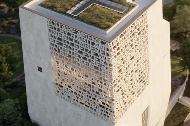 园区内,最引人注目的核心建筑是高68米的博物馆大楼,如同一个方尖碑,一些人戏称为“奥巴马纪念碑”。该建筑的设计灵感来自“四手合拢”的意象,象征多方力量的凝聚。博物馆外立面镌刻了奥巴马在纪念塞尔玛游行50周年时的演讲词句,将文字与建筑结构巧妙结合。博物馆内还设有一个“天空屋”,令观众可以在此俯瞰杰克逊公园及城市天际线。