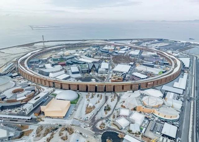 日本大阪世博会位于大阪湾区域的人工填海岛屿“梦洲”。这一岛上的世博园区占地约1.55平方公里,核心区域“宁静森林”环绕着8个特色展馆。其中,最吸人眼球的主建筑是一个巨型木制环状廊道建筑——“大屋根”,耗资约16亿元人民币。