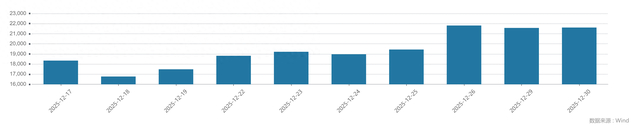 Wind资料显示,上证指数K线“十连阳”期间,虽然临近元旦假期,但A股成交额呈现放大趋势。特别是近3个交易日,A股成交额均超过2万亿元。
