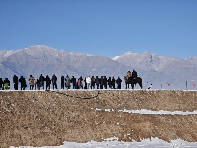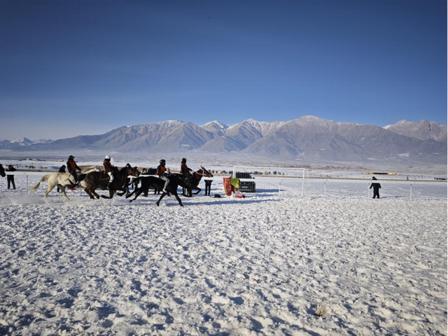 不过冬季的温泉县还远不止喂天鹅、泡温泉这两样冬趣。12月底的一个周末,温泉县就连续举办了两场赛马比赛。赛马是当地牧民最喜欢的活动之一,温泉县一年四季要举办多次赛马活动。