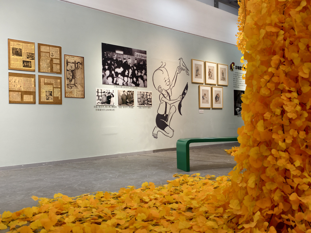 展览现场复原了张乐平先生故居和故居院中的银杏树景观。
