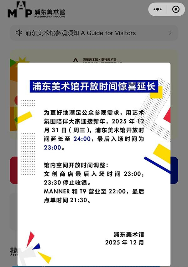 浦东美术馆12月31日延长营业时间的公告
