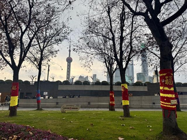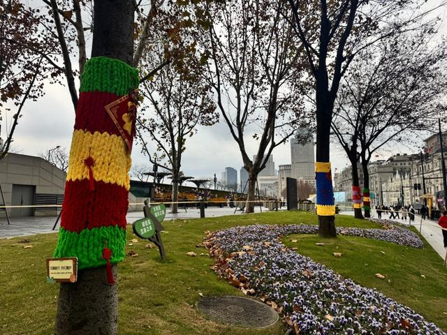 新年即将到来,上海外滩部分树木已提前穿上“毛衣”,为外滩景区增添迎新氛围。