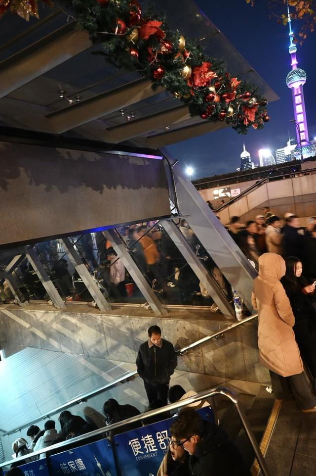 12月31日,外滩灯光璀璨。澎湃新闻记者 吴栋 图“尽管这里和希腊过节的气氛不一样,但在中国过新年太不可思议了。”来自希腊的游客Hercules与家人一同在上海迎接元旦。他的感受印证了上海跨年氛围的独特吸引力——既保留了传统的节日温情,又充满国际大都市的开放与活力。