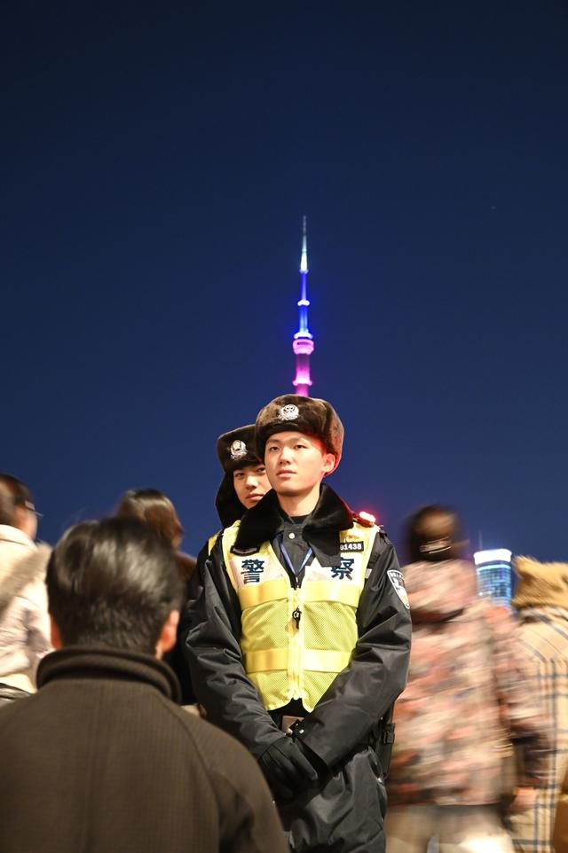 2名警察在外滩执勤。澎湃新闻记者 吴栋 图