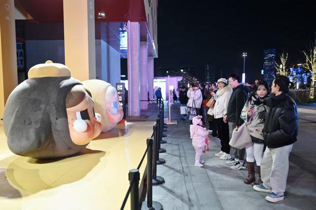 泡泡玛特Crybaby展览门前排起长队。澎湃新闻记者 朱伟辉 图外滩:藏着最热闹的跨年氛围