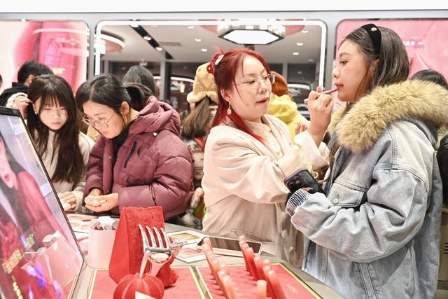 西岸梦中心某品牌化妆品店吸引众多市民游客。澎湃新闻记者 朱伟辉 图