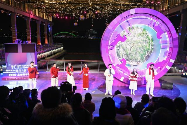 12月31日,上海西岸梦中心,阿卡贝拉表演。澎湃新闻记者 朱伟辉 图西岸梦中心主街星光熠熠,水岸露天冰场、船坞、筒仓三大核心区域年味拉满。1500平方米的水岸冰场变身跨年主舞台,冰上钢琴《月光》的悠扬旋律流淌,《雨中曲》快闪灵动俏皮,《敦煌》鼓乐气势磅礴,炫酷冰舞点燃全场热情,中外文化在这里碰撞出奇妙火花。最后,全场合唱《Happy New Year》,将现场的欢乐氛围推向顶峰。