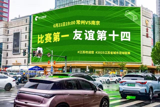 2025年6月,南京市中心一块大屏上打出“比赛第一 友谊第十四”的标语。南京市委网信办供图用诙谐的表达方式营造不一样的城市观感