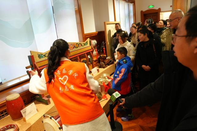 与此同时,18名学生志愿者分别走进音乐城堡、城市音乐会客厅和美育楼,为“冼星海诞辰120周年专题展”“上音非遗专题展”“华夏器韵”等专题展览提供专业导赏。