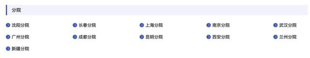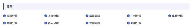 目前,中科院官网“组织机构”公布的分院包括:沈阳分院、上海分院、武汉分院、广州分院、成都分院、昆明分院、西安分院、兰州分院、新疆分院。