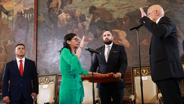 据新华社报道,委内瑞拉代理总统德尔西·罗德里格斯5日下午在该国全国代表大会宣誓就任委临时总统。