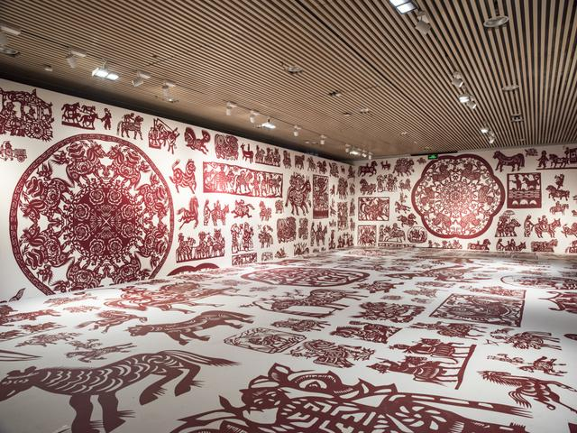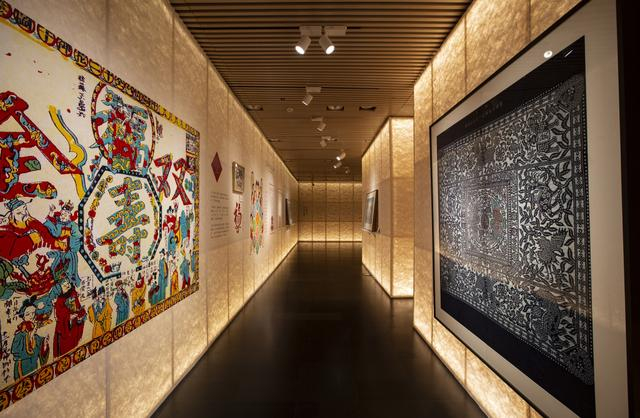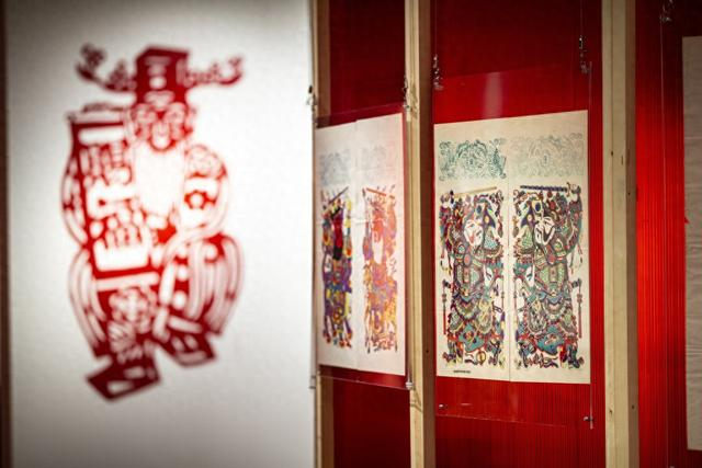 展厅里热闹的窗花、春联营造着浓郁的节日氛围。