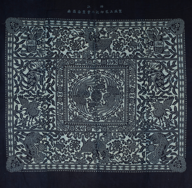 蓝印花布被面