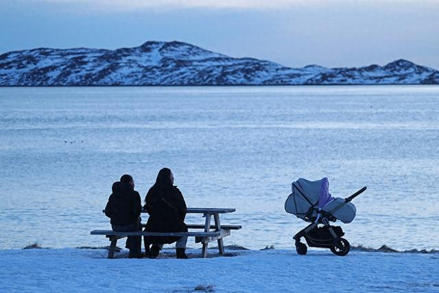当地时间2026年1月25日,格陵兰岛努克,人们带着婴儿车坐在被白雪覆盖的海滩上。视觉中国 图“征服合法”的病态国际法原则如今已被抛弃