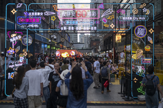 2025年10月2日,在上海吴江路夜市,市民游客络绎不绝。视觉中国 资料图