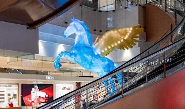 南京路步行街马年装置。本文图片均为 澎湃新闻记者 李菁 图多处马年专属装置引人驻足。新世界城、新世界新丸中心、步行街金带、第一百货商业中心等核心点位,分布着7处打卡点,别致的奔马造型搭配中国红元素,充满新春喜庆。其中,主街金带上,幸福加“马”,传递“马上幸福、被爱环绕”的暖意;心愿加“马”,寓意“心愿加码、所愿皆成”;好运加“马”,承载美梦成真的期许。新世界新丸中心打造的艺术装置《星翼丙午》同样亮眼,成为南京路马年氛围的标志性打卡点。