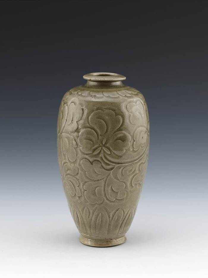 北宋 耀州窑青釉刻花牡丹纹瓶