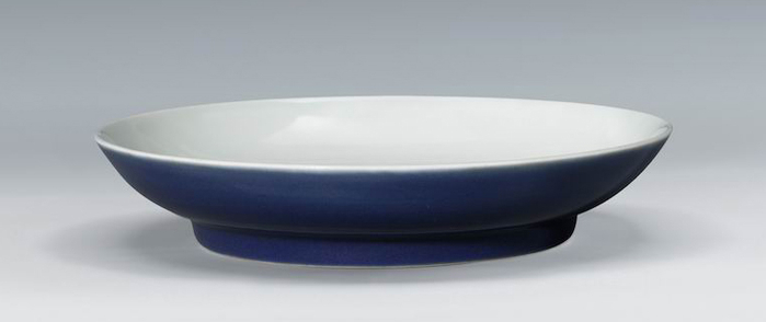 明宣德 景德镇窑蓝釉暗花龙纹盘