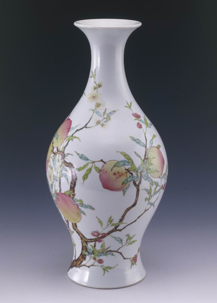 清 雍正 景德镇窑粉彩蝠桃纹瓶