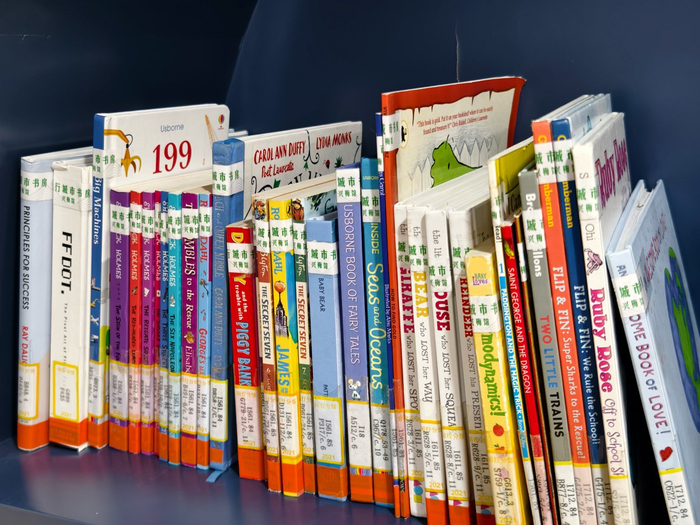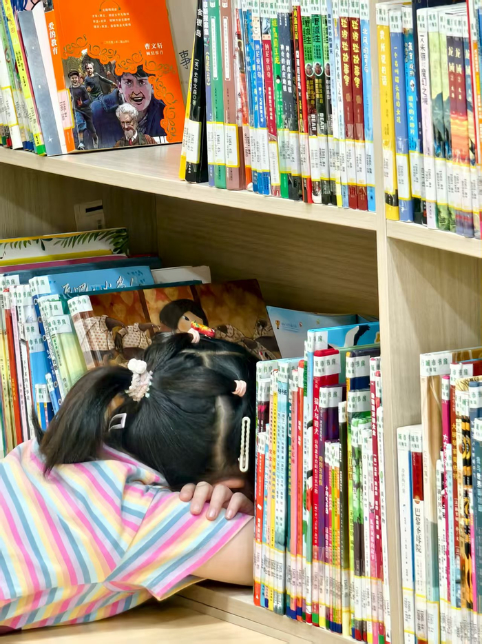 看书的小读者 澎湃新闻记者 罗昕 图可以看到,童书、绘本是这里的一大藏书特色,二楼书架上几乎都是少儿读物,甚至有不少英文原版童书。在记者探访期间,就有家长带着小朋友抱着一大袋绘本而来,先通过自助借还机还了十几本,又新借了十几本满载而归。
