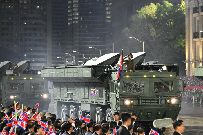 10日晚,朝鲜在首都平壤市中心的金日成广场举行盛大阅兵式,庆祝朝鲜劳动党成立80周年。朝鲜劳动党总书记、国务委员长金正恩在阅兵式上发表讲话。多国政要出席阅兵式。