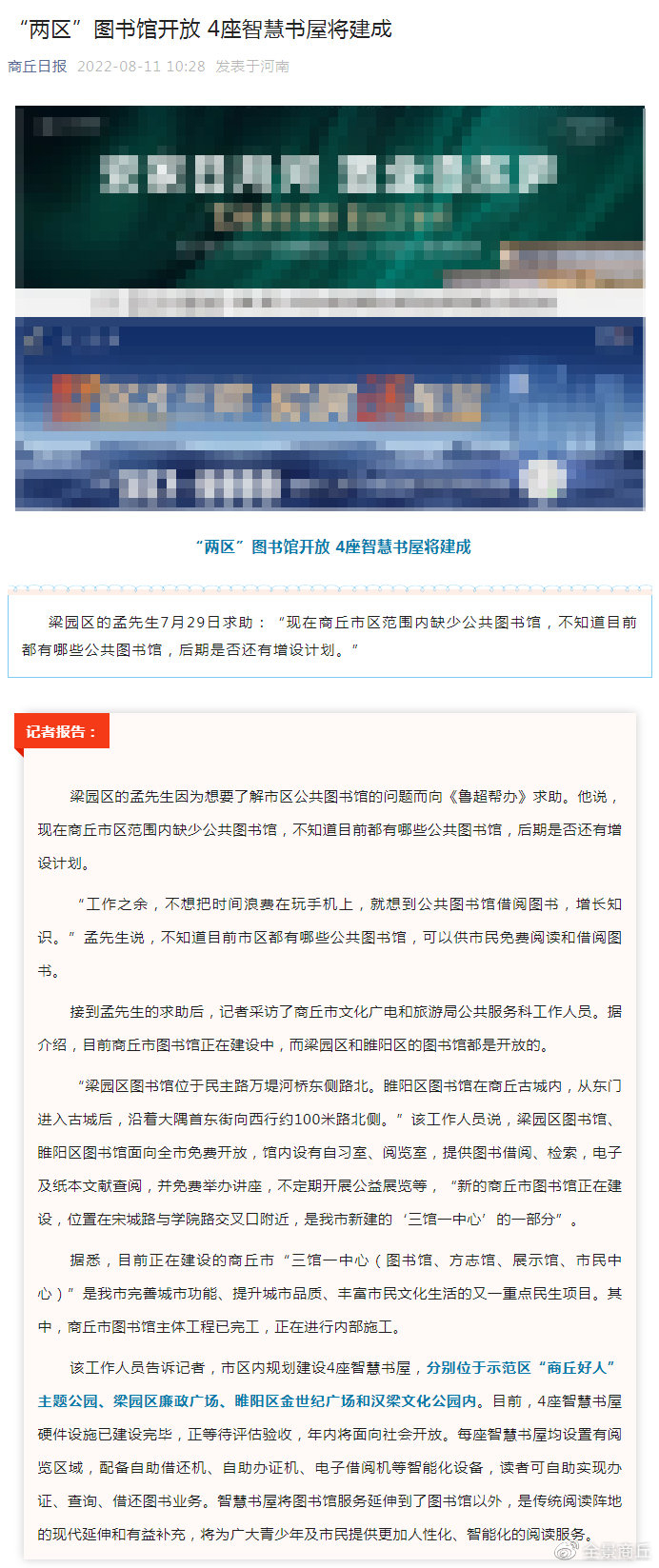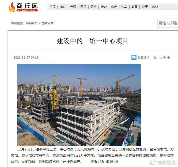 2022年08月,“三馆一中心”中的商丘市图书馆主体工程已完工,正在进行内部施工。