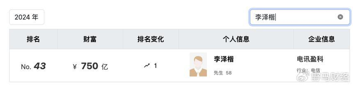 李泽楷靠着自己的能力虽闯出了一片天,但与父亲创造的财富相比仍存在一定差距。据胡润百富榜显示,2024年李嘉诚家族财富值2000亿元,排名第六,李泽楷则排名43,财富值750亿元。