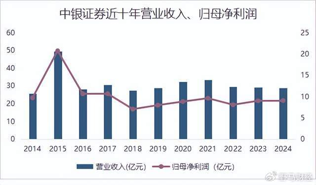 作为国有大行旗下的券商,中银证券规模偏小,且近8年业绩几乎处于停滞状态,还依赖传统的经纪业务。虽然2024年四季度以来,受证券市场强势回暖影响,业绩大幅增长,但“看天吃饭”的业绩并不稳定。