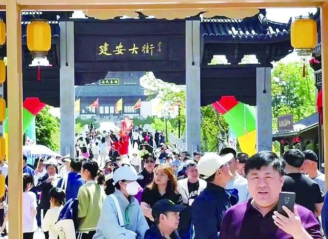 大纵湖东晋水城主打休闲度假的大纵湖东晋水城,“五一”假期游客盈门。“我们拥有开元度假、比弗利等8家酒店,共有客房520套,1000余张床位,‘五一’期间每天客满。”开元酒店总经理蒋华燕说,“许多游客都是回头客,住在景区里,度假游玩轻松不累。”