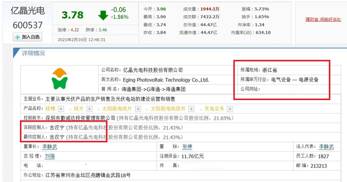 古汉宁(亿晶光电科技股份有限公司实际控制人)