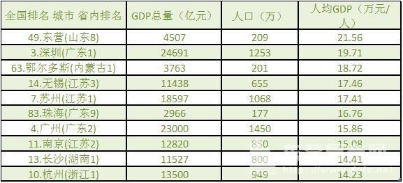 山东共15市跻身人均GDP百强,东营GDP总量虽在省内第8,但因人口最少,仅213万人,人均GDP远高于其他市。