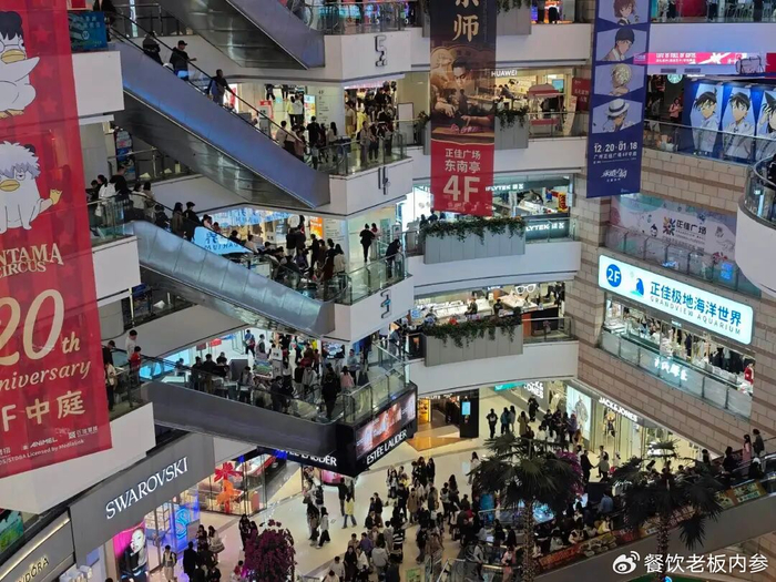 元旦当日晚间,内参君来到正佳广场,发现每一家餐饮店都在排队。“整个商场绕了一圈,没有一家能马上吃上饭的。”一位年轻的消费者告诉内参君,“就连平常都没多少人光顾的那几家店,吃饭也都要排队了。”