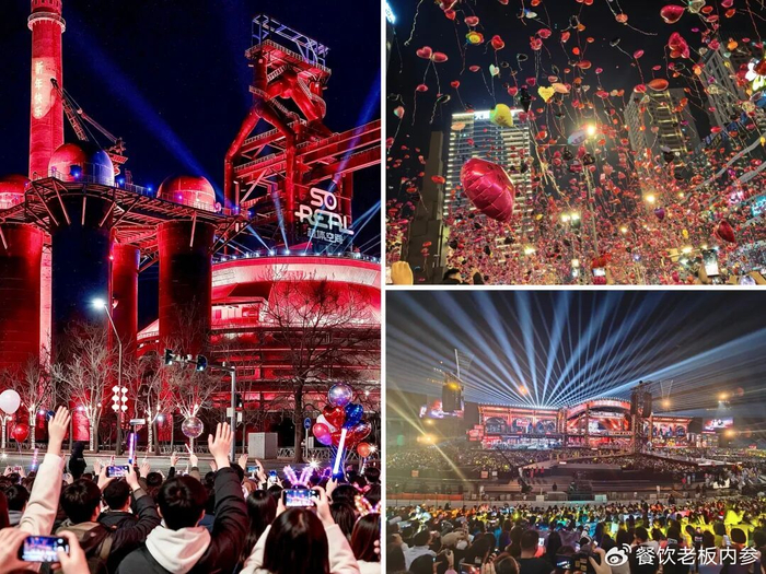 位于大兴区的北京荟聚,当晚目测人流量不低于10万,22时左右交通限行,因客流量过大当晚甚至取消了跨年倒计时活动;位于朝阳区的合生汇,一贯是北京年轻人的打卡好去处,跨年夜当晚停车场拥堵时长超过1小时,商场内烤匠排队超过2000桌;通州区新开业商场湾里,跨年夜当晚“非遗巨型6米鱼灯”、“乌镇戏剧节爆火剧目”等系列活动吸引大量顾客……