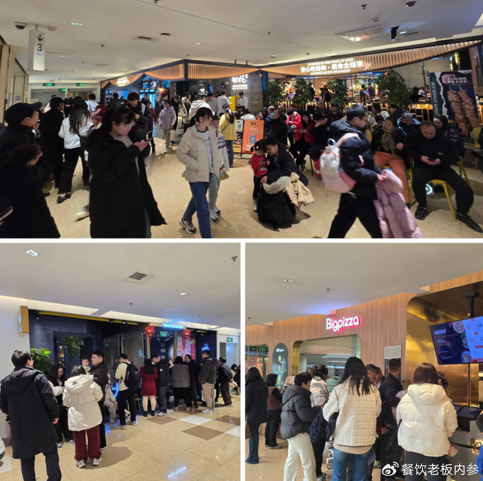 商场内自助餐品牌们迎来年度“高光”,从人均300元左右的大鱼铁板烧海鲜自助,中午11点正式开餐时便瞬间坐满;到人均100元左右的梨花烤肉自助、比格比萨自助、西十二街牛排自助等开餐即排起百桌叫号单,其中“梨花”等位区几乎连“站位”都挤满,一位消费者告诉内参君,“我11点半左右到这里,就已经排了好多人。现在人更多,排队一小时起步。”
