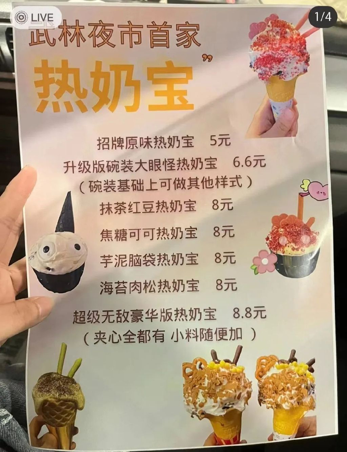 不仅是夜市摊、后备箱集市中密集出现的流动摊位,更是有一些奶茶店、甜品店嗅到了“网红单品”的味道,闪电速度上新了“热奶宝”,这些店铺定价通常比流动摊贩稍贵一些。