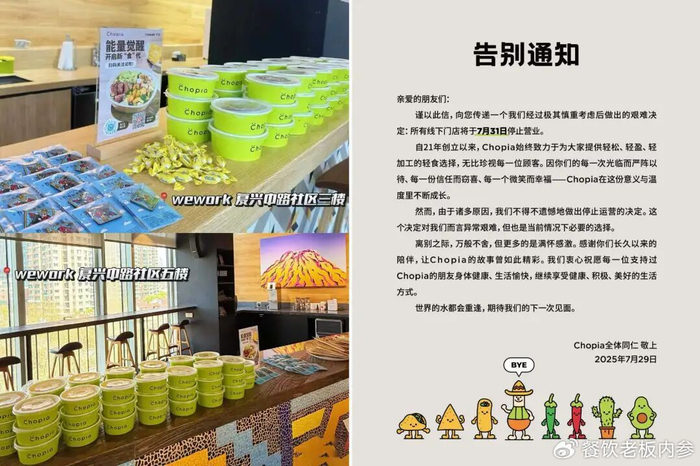 今年7月份,轻食品牌Chopia的上海门店也传出关门歇业。这个曾在本地白领圈中颇有口碑的品牌,同样没能熬过当下的周期。
