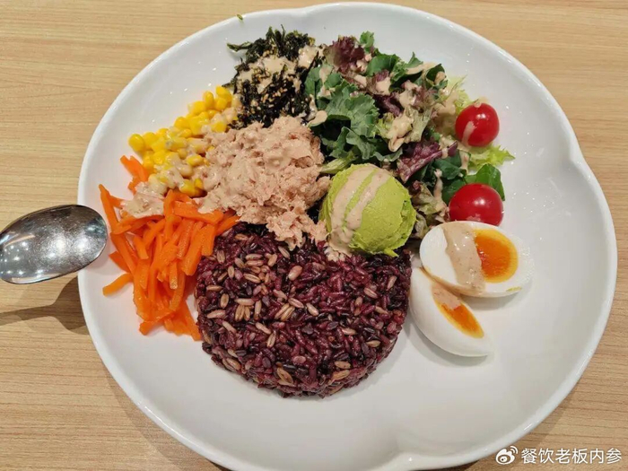 最近,被不少打工人当成减脂餐的米村拌饭,在山东青岛试点上新了轻食拌饭。