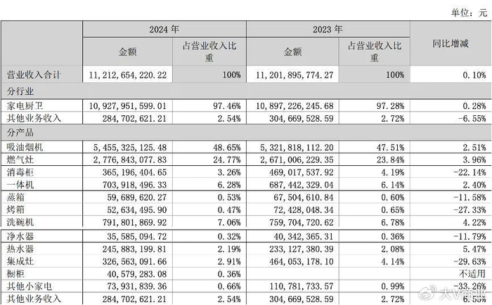 比如说老板电器自身,2023年发力的集成灶业务获得了20.58%的增长,销售额从3.8亿元增长到了4.6亿元,但是到了2024年增速下滑29.63%,销售额再次将回到3.3亿元。