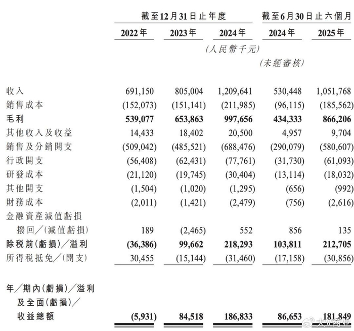 招股书显示,2022年到2024年,林清轩营收实现了16.5%、50.3%的增长,尤其是2025年上半年营收达到10.52亿元,几乎是半年卖了一年的量。