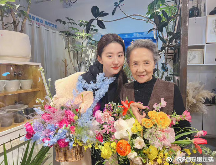 刘亦菲和阿奶插画合照,仙女姐姐和鲜花最配了!我的豆奶CP也好好磕!