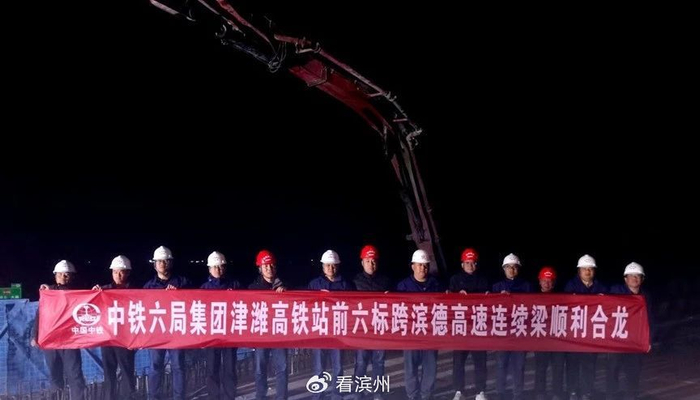 4月5日凌晨,津潍高铁建设迎来重要节点——津潍高铁站前六标无棣特大桥跨滨德高速(46+80+50)米连续梁顺利合龙。这是津潍高铁站前六标2025年首座悬浇合龙的连续梁,标志着该项目关键控制性工程取得重大进展,为后续架梁工作的开展及全线按期通车奠定了坚实基础。