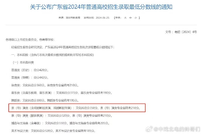 距离高考仅剩15天,我更关注黄杨钿甜备考高考的情况。我查阅了2024年广东省高招录取政策,深圳表演艺考生若想被中戏或北电录取,高考文化课总分需达350分基准线。350分,对于冲刺名校的艺考生并不难,但对于身处舆论风暴的黄杨钿甜则是巨大考验。作为艺考博主,我祝福每位凭借自身努力获得合格证的艺考生顺利上岸。