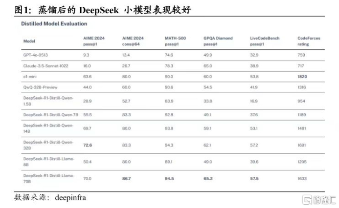 Deepseek支持本地部署的小模型表现出色,解决制约AIPC渗透的关键难题。AIPC硬件产品推出已有时日,但是预训练大模型能力有限以及基于国外厂商API调用的限制,导致用户换机动力不足。而Deepseek 蒸馏后的不同参数规模的小模型(15B、7B、8B、14B、32B、70B)具有较好的表现,参照测评结果,DeepSeek32B模型的性能表现较好,其在AIME2024基准测试中准确率达到 72.6%;在 MATH-500 基准测试中,该模型的准确率为94.3%;在LiveCodeBarometer 基准测试中,其准确率为 57.2%。Deepseek 使本地部署知识库从企业端扩展到个人用户,通过AnythingLLM 和Ollama高效且灵活的构建私有化的 AI 知识管理系统,不仅保护数据隐私 而且可以根据特定需求进行定制优化。