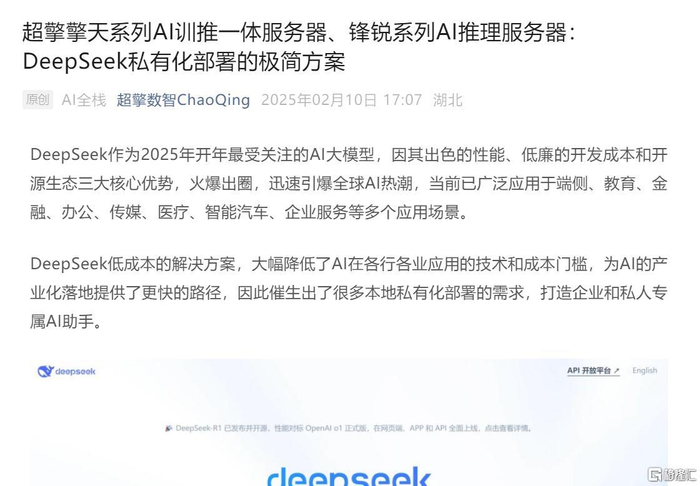 DeepSeek大火后,超擎数智乘势抓住机遇,为企业提供DeepSeek本地私有化布局方案。