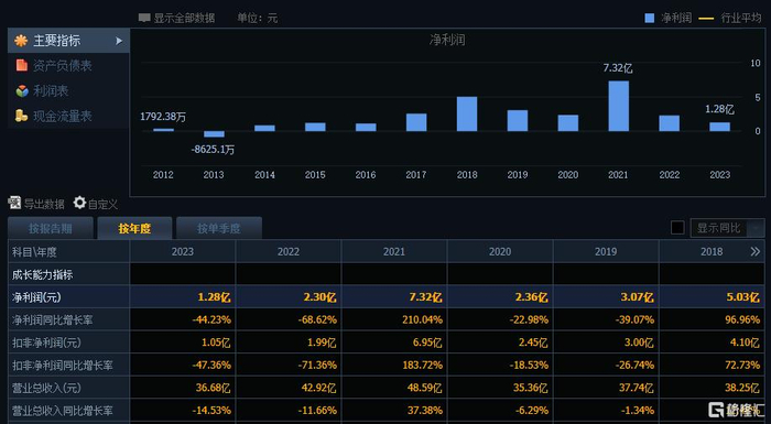 2022年-2023年,航锦科技分别实现净利润2.3亿元、1.28亿元,同比下滑68.62%、44.23%。