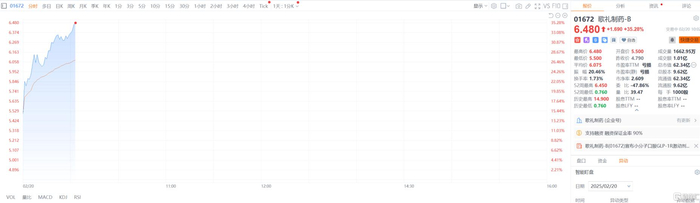 今日开盘,歌礼制药股价快速拉升,截至发稿,公司股价飙涨35%,最新报6.47港元/股,总市值62.05亿港元。