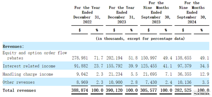 其中,2024年前9个月,由于微牛公司的期权订单流返利、股票借贷收入和客户银行存款利息减少,导致其总收入同比减少2300万美元至2.83亿美元。