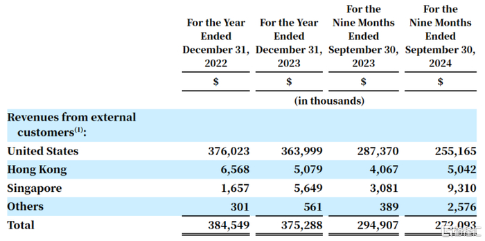 而公司的外部客户收入中,来自美国的占比较大,其次是中国香港和新加坡。